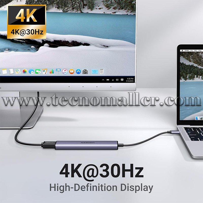 Pantalla impresionante 4K: El puerto HDMI admite pantallas multimedia a resoluciones de hasta 4K 30Hz, manteniendo cada momento increíble detallado y ultra vívido. Tenga en cuenta que el puerto C del dispositivo host necesita admitir la salida de video