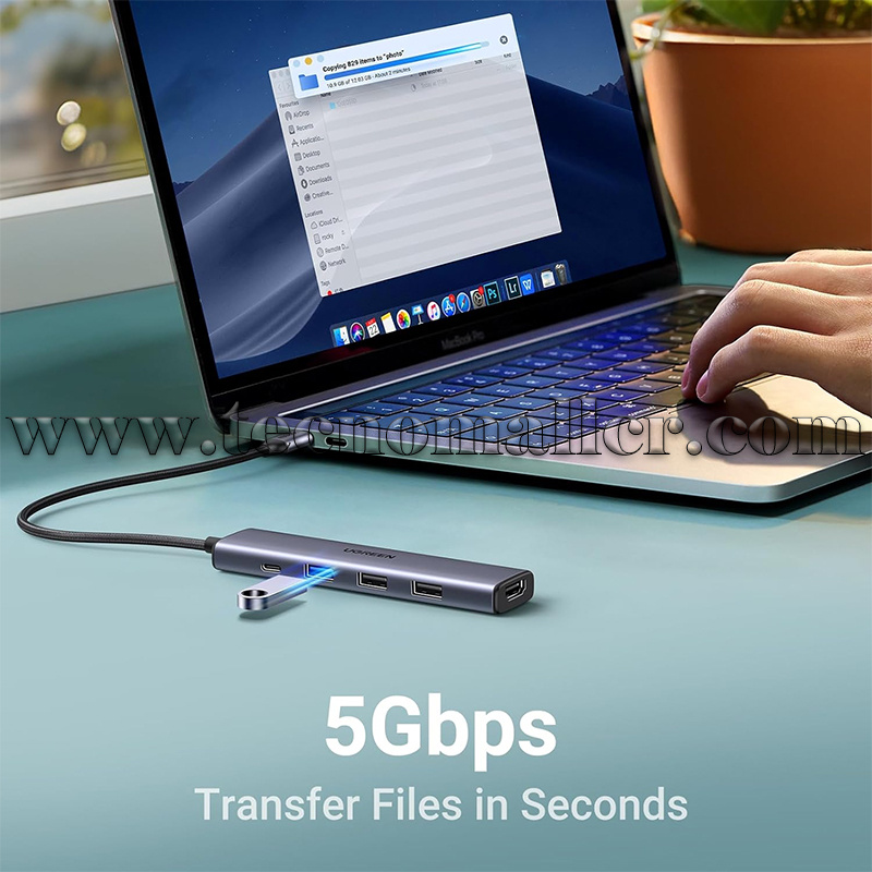 Conectividad 5 en 1: el adaptador multipuerto USB C está equipado con un puerto HDMI 4K, un puerto USB C PD de 100 W, un puerto de datos USB A de 5 Gbps y dos puertos USB A de 480 Mbps