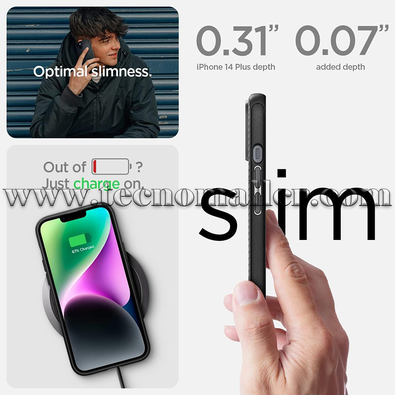 iPhone 14+/15+ estuche Spigen Mag Armor MagFit protector delgado compatible con MagSafe